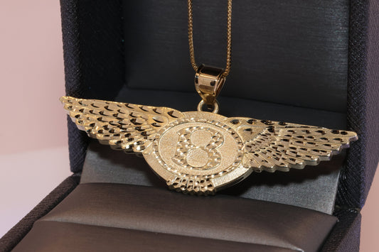 10K 14K 65mm Solid Yellow Gold Bentley Flying B Logo Wing Pendant