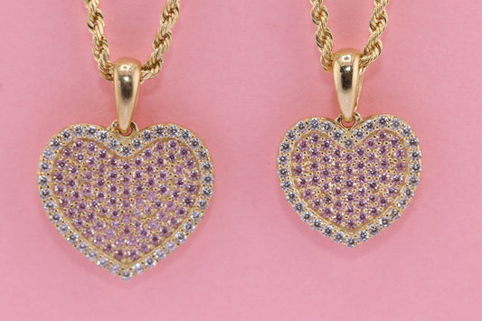 10k Solid Gold Heart Pink White CZ Heart White Love Pendant