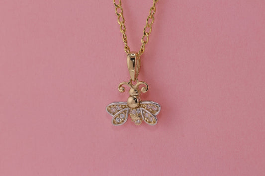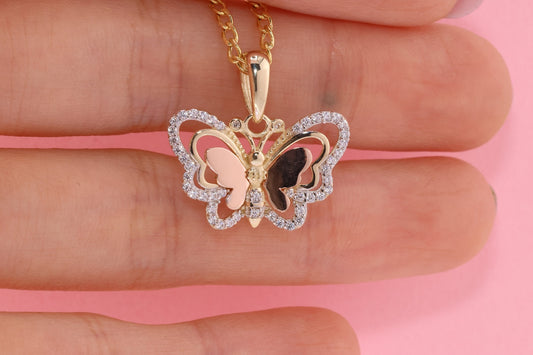 14k Tri Color Cubic Zirconia Butterfly Pendant F