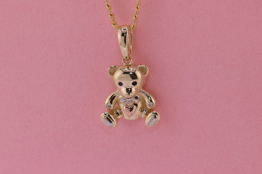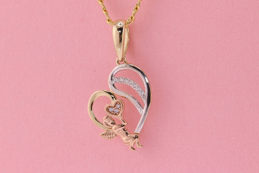 14K Tri Color Cubic Zirconia Heart Angel Pendant