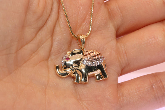 14k Tri Color Cubic Zirconia Elephant Pendant A