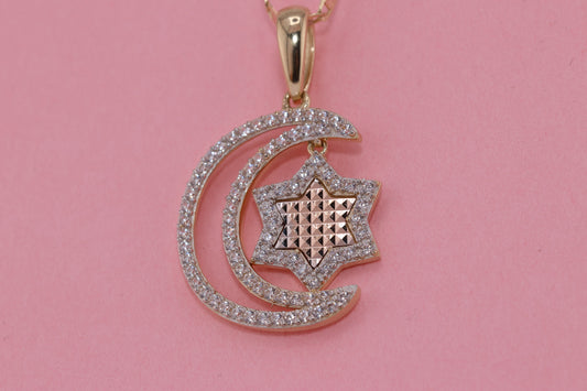14K 3D Tri Color Cubic Zirconia Saint Jude Pendant