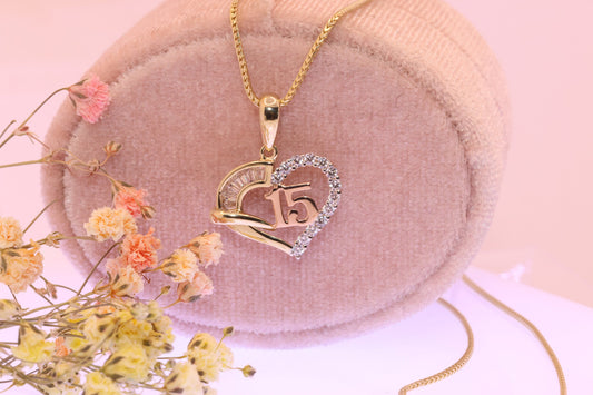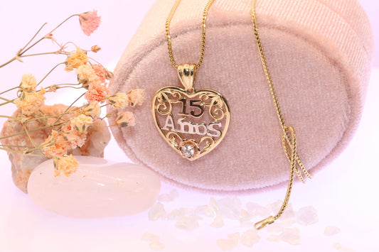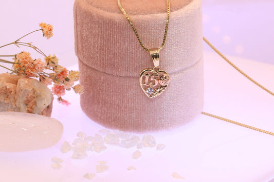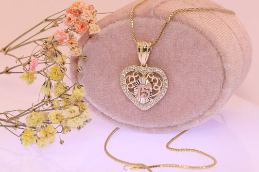 14K Gold 15 Anos Quinceanera Heart Pendant A