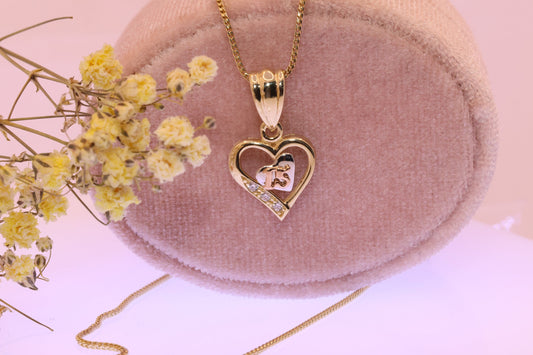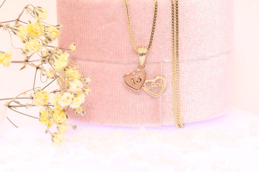 14K Gold 15 Anos Quinceanera Heart Pendant H