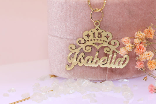 10K 14K Gold Personalized 15 Anos Quinceanera Crown Pendant