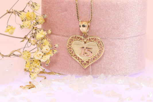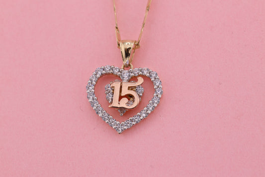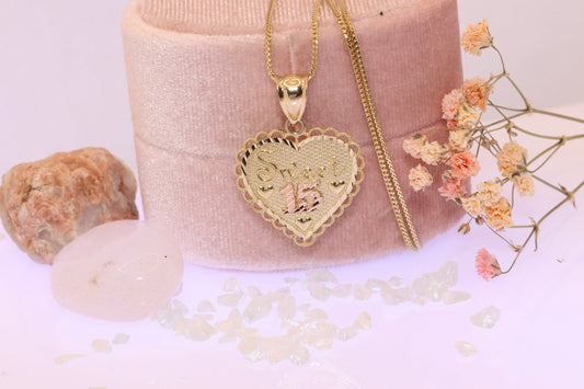 14K Gold 15 Anos Quinceanera Heart Pendant G