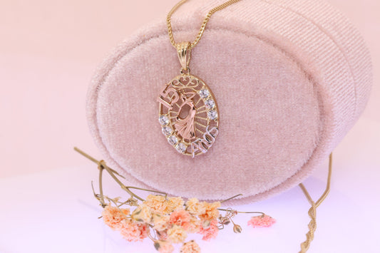 14K Gold 15 Anos Moon and Heart Quinceanera Pendant