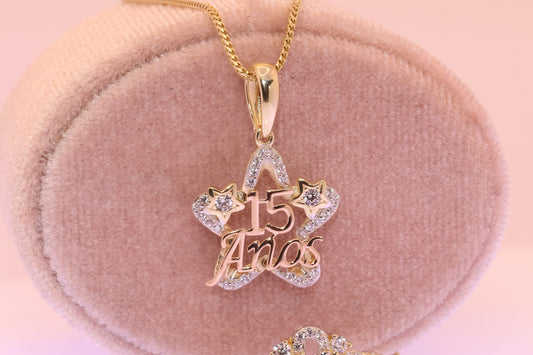 14K Gold 15 Anos STAR Quinceanera Pendant