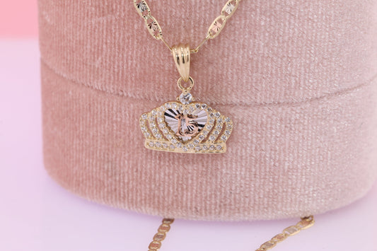 14K Gold 15 Anos Quinceanera Crown Pendant B