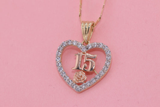 14K Gold 15 Anos Quinceanera Heart Pendant F