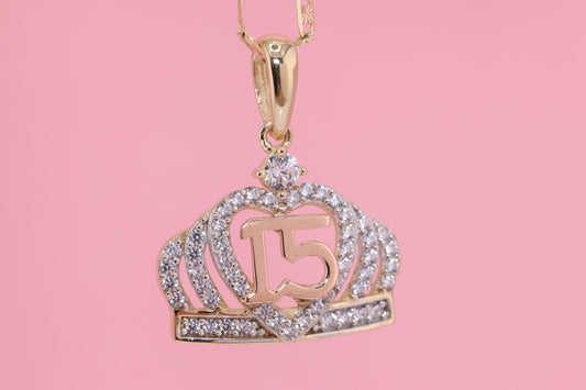 14K Gold 15 Anos Quinceanera Crown Pendant C