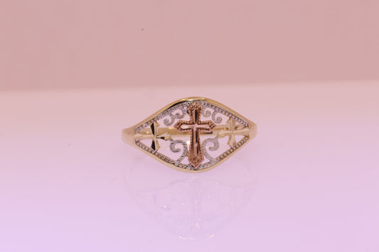 14k Solid Rose Gold Cross Religious Ring