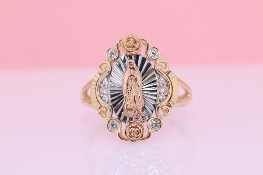 14k Solid Gold Virgin Mary Virgen Maria Lady Guadalupe Ring TT