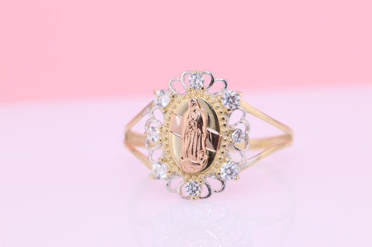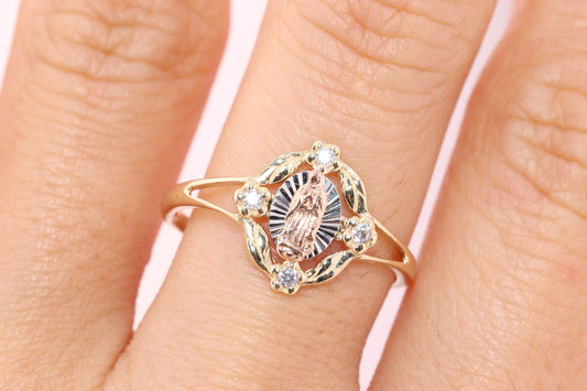 14k Solid Gold Virgin Mary Virgen Maria Lady Guadalupe Ring K
