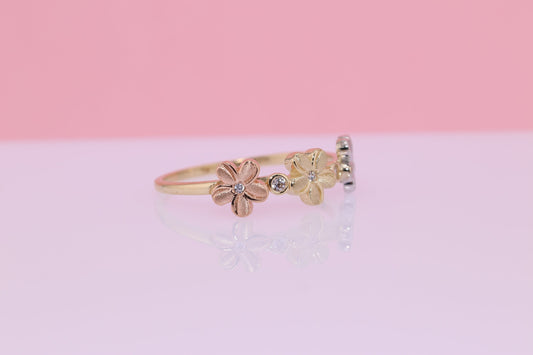 14k Solid Yellow Gold Hawaiian Fancy Plumeria Flower Ring