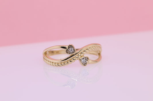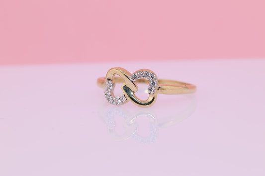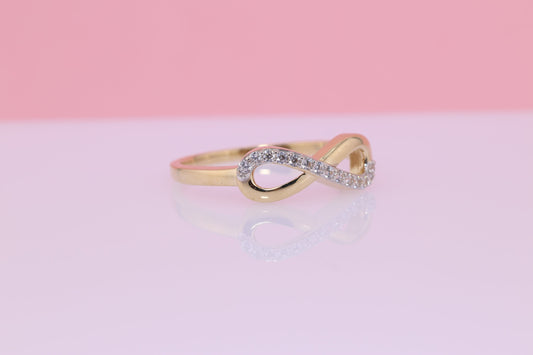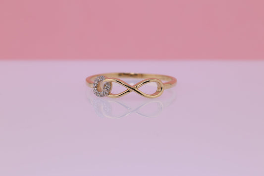 14k Solid Gold Infinity Sign CZ Heart Ring