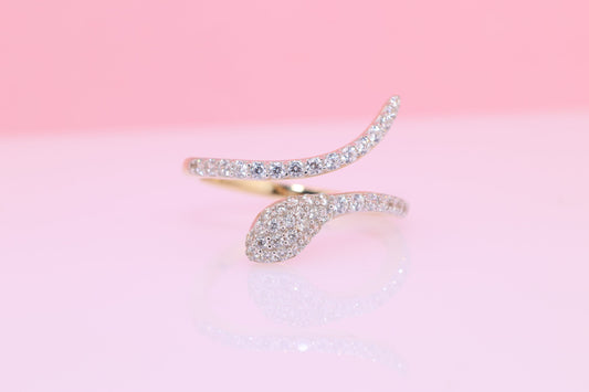 14K Solid Gold CZ Snake Ring