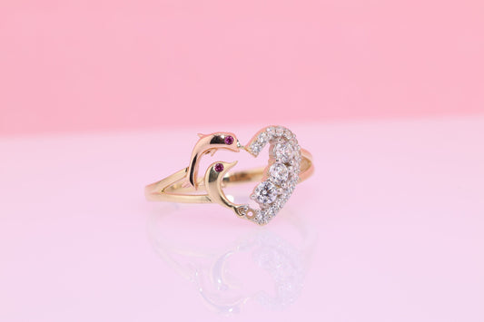 14k Gold CZ Dolphin Ring