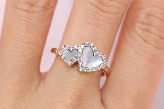 14k Solid Gold Heart CZ Opal Ring
