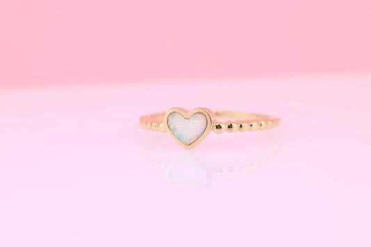 14k Solid Gold Opal Heart Ring