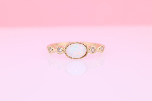 14k Solid Gold Oval Opal CZ Ring