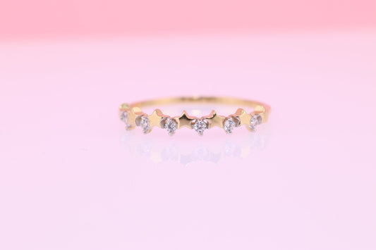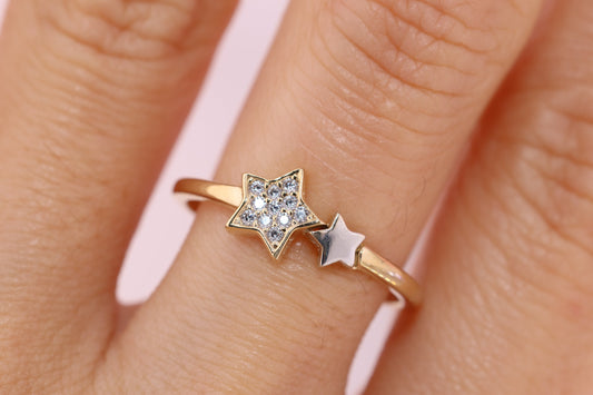 14K Gold Star CZ Unique Design Ring