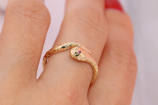 14K Solid Gold Snake Ring A