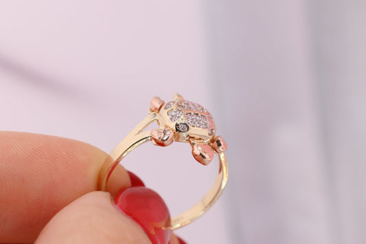 14k Gold Tiny Cute Tortoise CZ Ring A