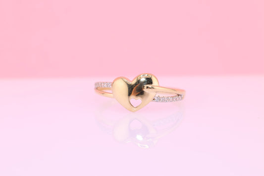 14k Solid Gold Cubic Zirconia Heart Ring