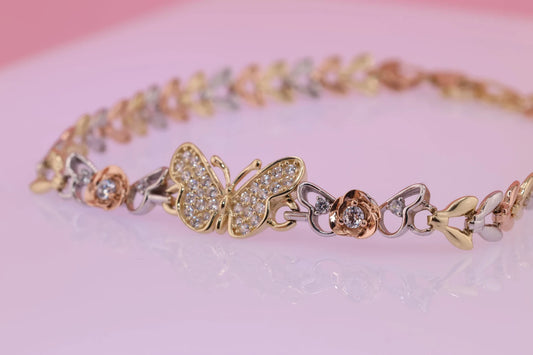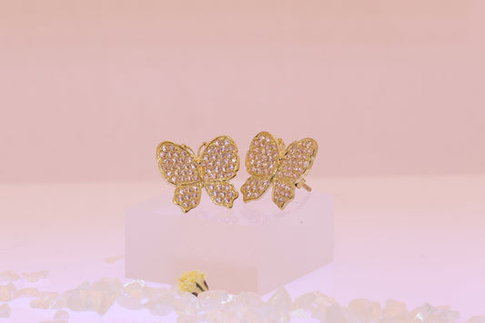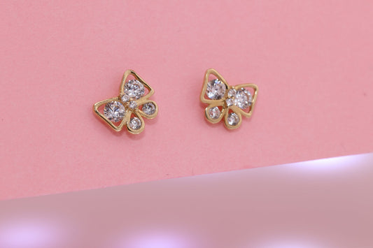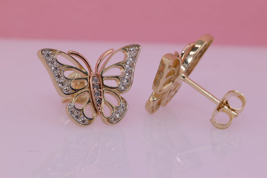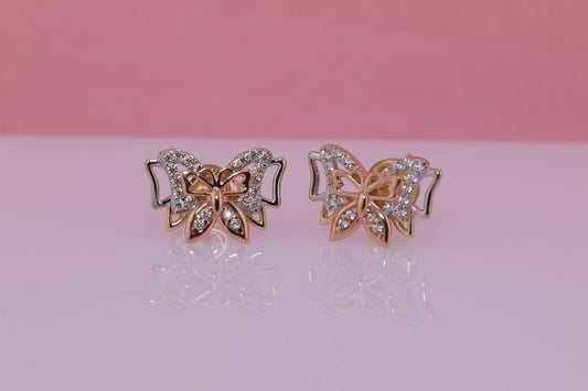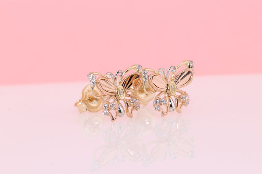 14k Solid Gold Two Tone Color Butterfly Push Back Stud Earrings