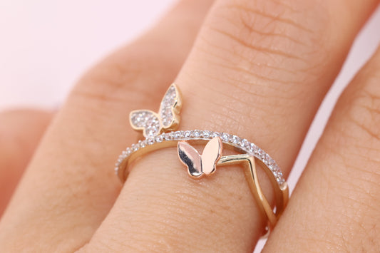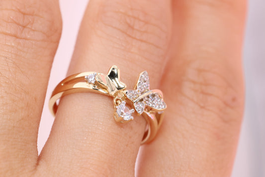 14k Gold Butterfly Toe/Midi Ring Adjustable Band