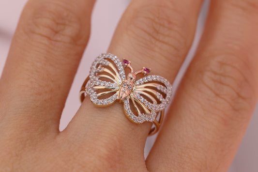 14k Two Color Butterfly Ring