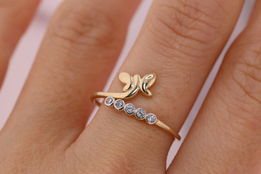 14k Gold Cubic Zirconia Butterfly Ring F
