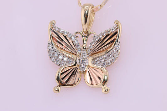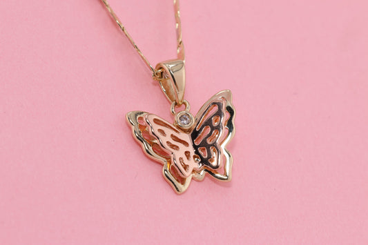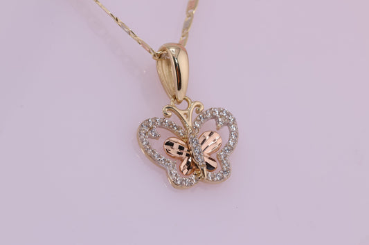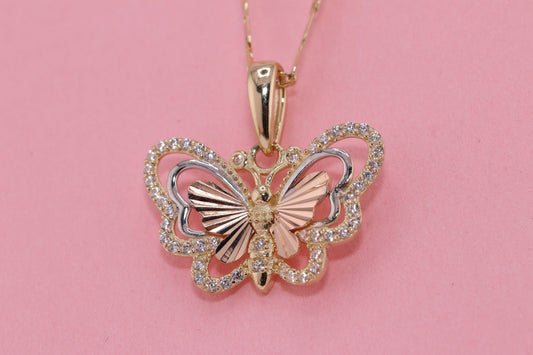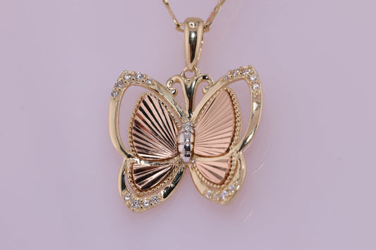 14k Tri Color Cubic Zirconia Butterfly Pendant E