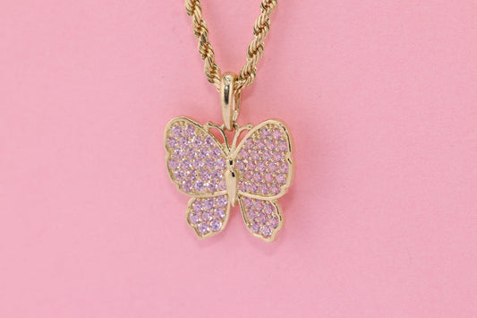 10k Solid Gold Heart Pink CZ Butterfly Pendant