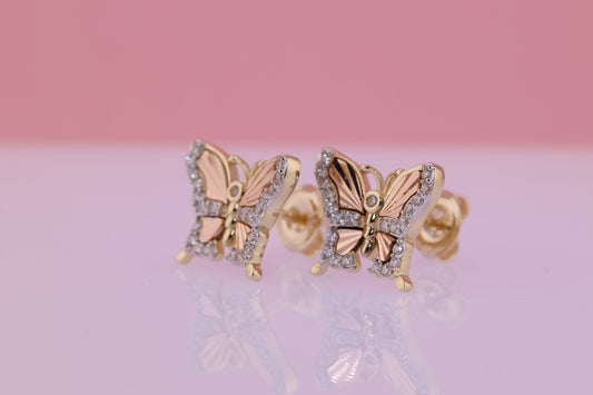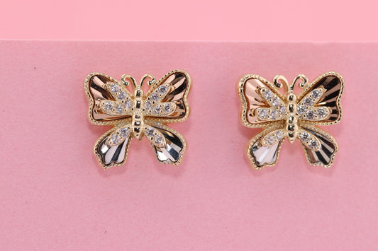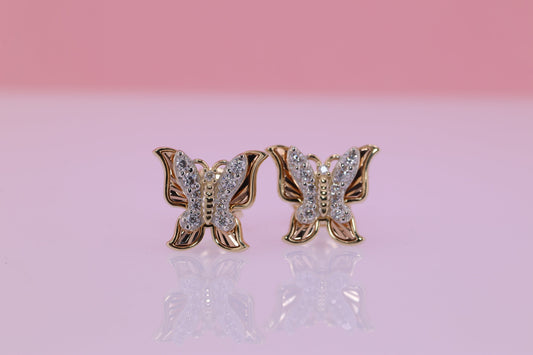 14k Solid Gold Two Tone Color Butterfly Push Back Stud Earrings D