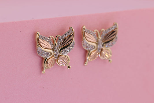 14k Solid Gold Two Tone Color Butterfly Push Back Stud Earrings C
