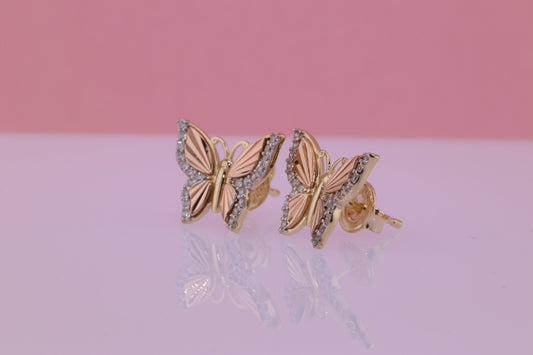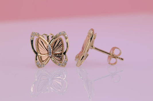 14k Solid Gold Two Tone Color Butterfly Push Back Stud Earrings B