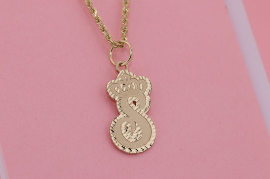 10K OR 14K Solid Gold Teddy Bear Name Pendant