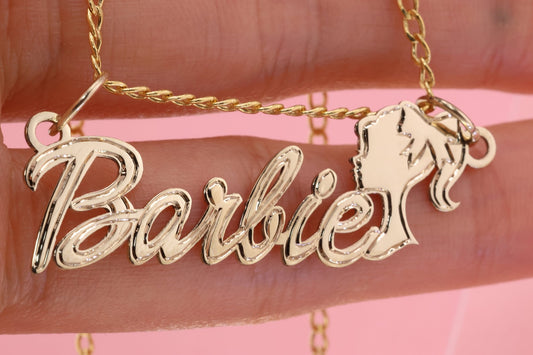 10K OR 14K Solid Gold Barbie Doll Head Name Pendant