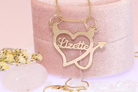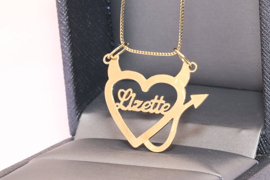 10K or 14K Gold Personalized Name with Devil Heart Pendant A