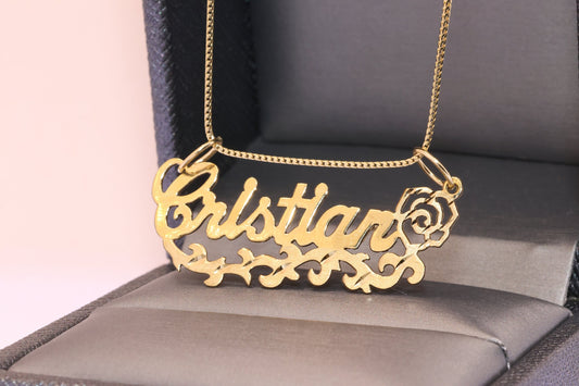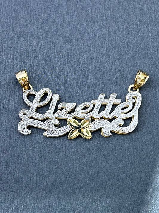 10K or 14K Gold Personalized Name with Rose Pendant B