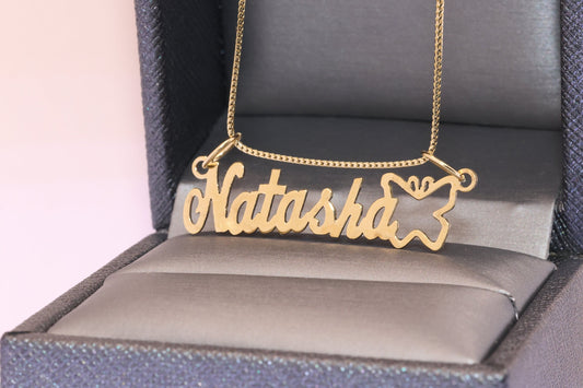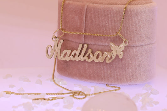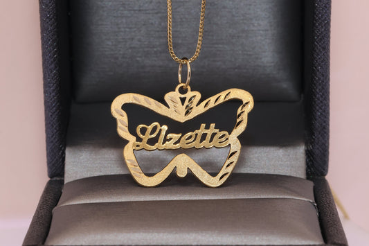 10K or 14K Gold Personalized Name with Butterfly Pendant A