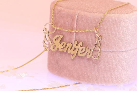 10K or 14K Gold Personalized Name with Angel Wing Pendant