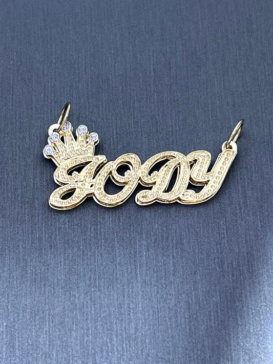 10K or 14K 3D Crown Gold Personalized Double Plate Name Pendant