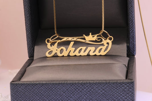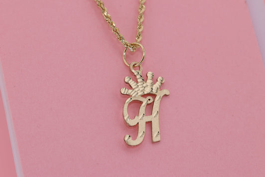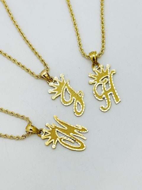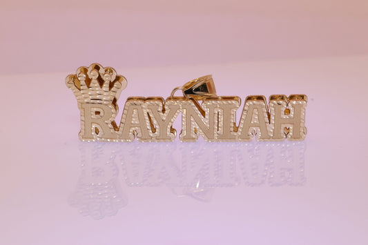 10K or 14K Gold Personalized Name with Crown Pendant A