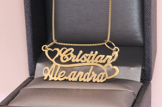 10K or 14K Gold Personalized Double Name with Heart Pendant A