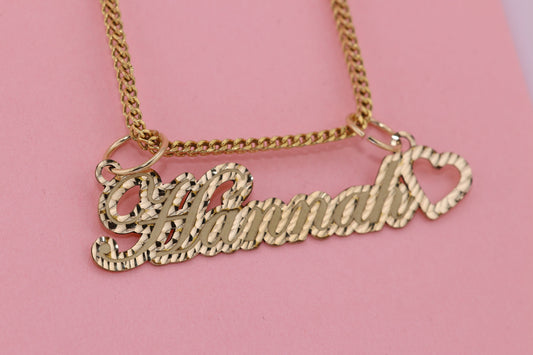 10K or 14K Gold Personalized Name with Heart Pendant B