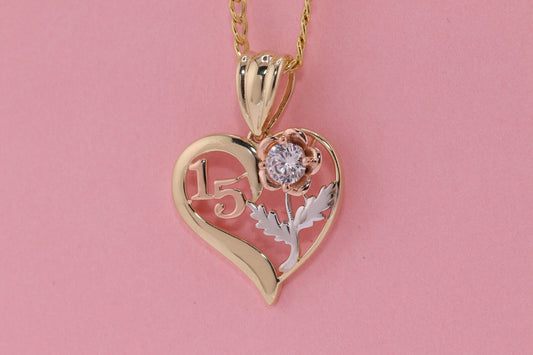 14K Gold 15 Anos Quinceanera Heart Pendant F