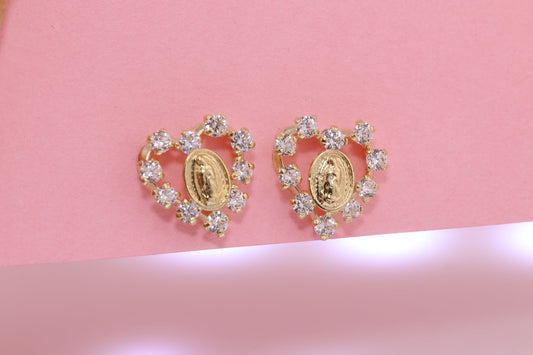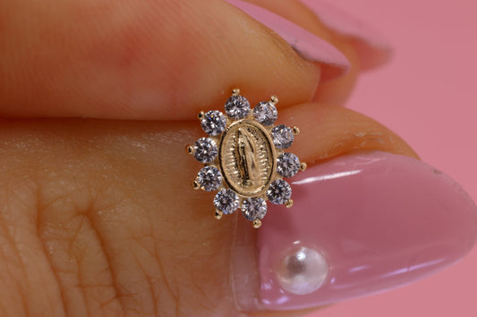 14k Solid Gold Virgin Mary Virgen Maria Lady Guadalupe Earrings M